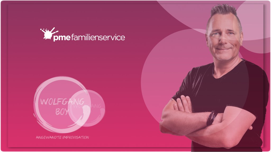 Der pme Familienservice bietet selbstverständlich neben Formaten mit Angewandter Improvisation eine Menge anderer intessante Veranstaltungen an. Alle Webinare / Vorträge werden aufgezeichnet und stehen 14 Tage lang online zur Verfügung. Die ErlebnisWorkShops werden nicht aufgezeichnet, da wir in einem sicheren und humorvollen Rahmen gemeinsam vor der Kamera aktiv sind.