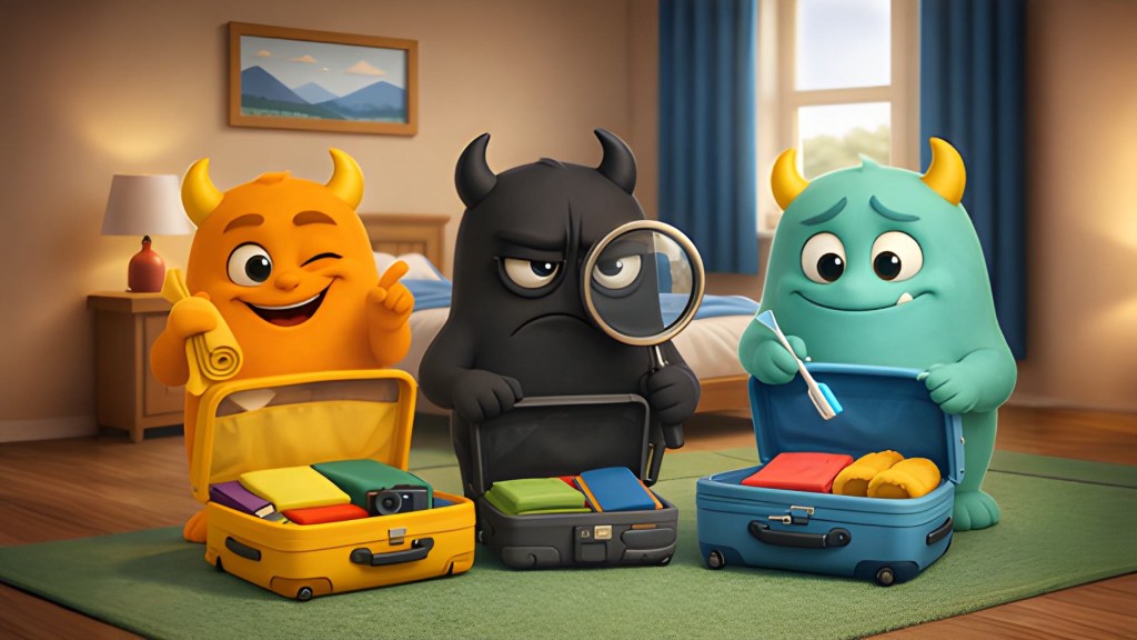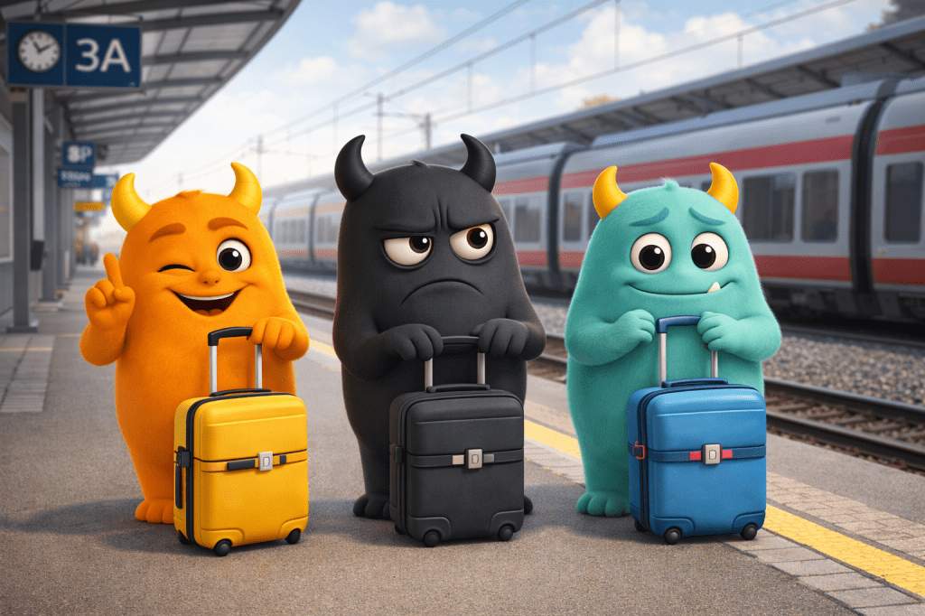 Ich habe die 3 schon vorgeschickt. Bereits gestern haben sie ihre Koffer gepackt. Jeder auf seine Weise.