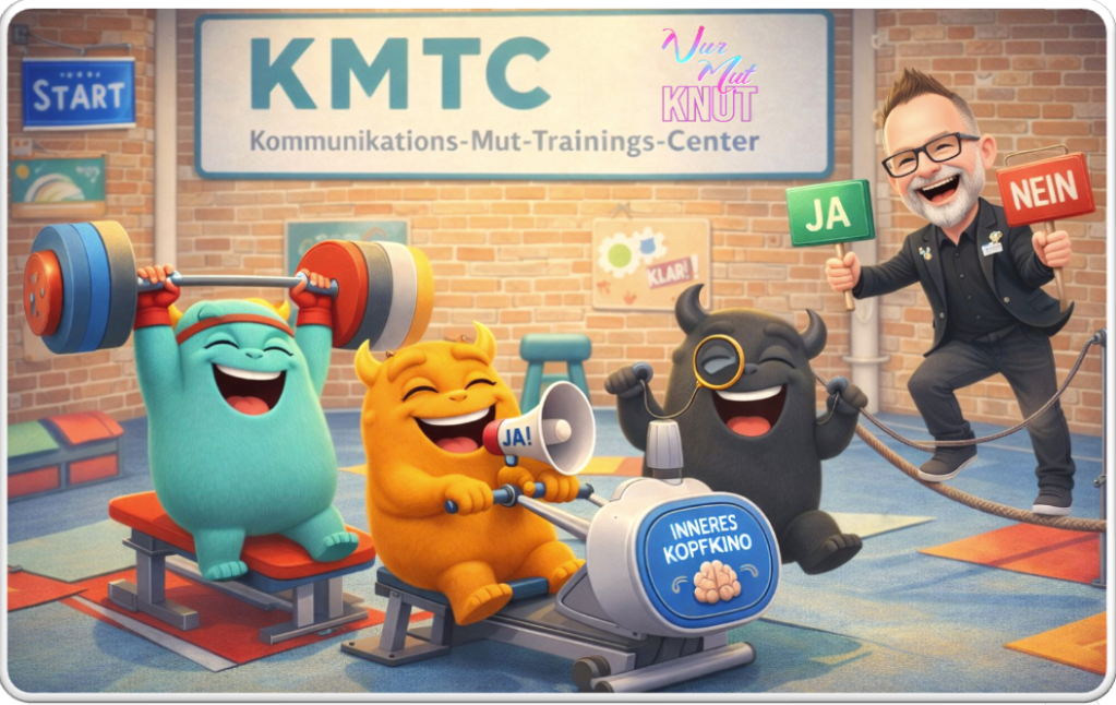 Begleitet Knut, Frida, Hein und mich in das KMTC – das Kommunikations-Mut-Trainings-Center.